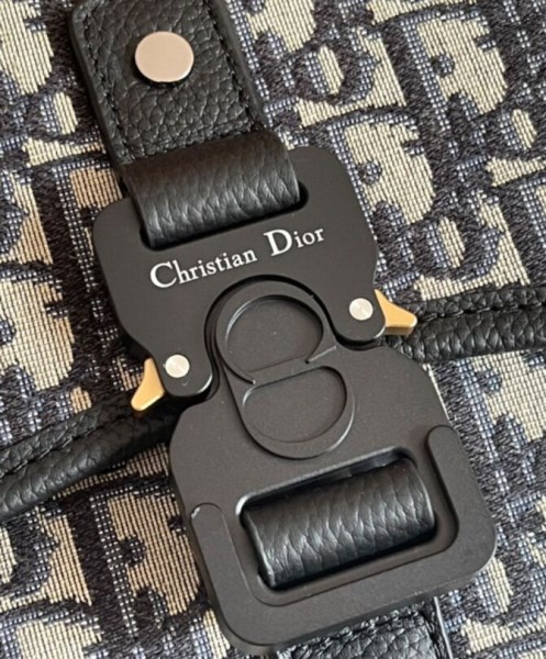 Aluminum buckle with CHRISTIAN DIOR signature and CD letters on flap closure