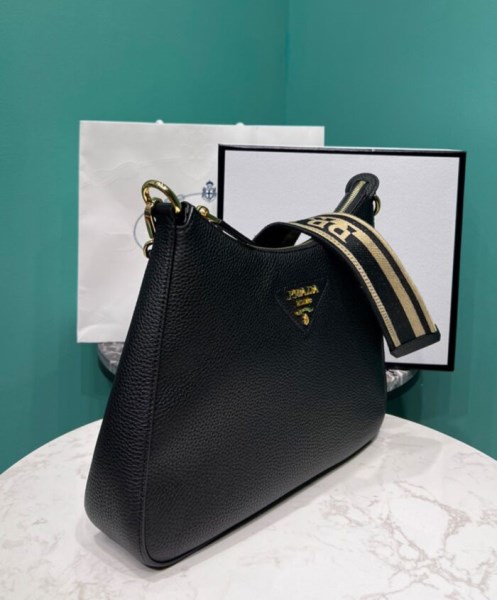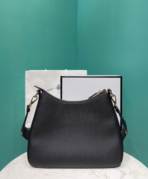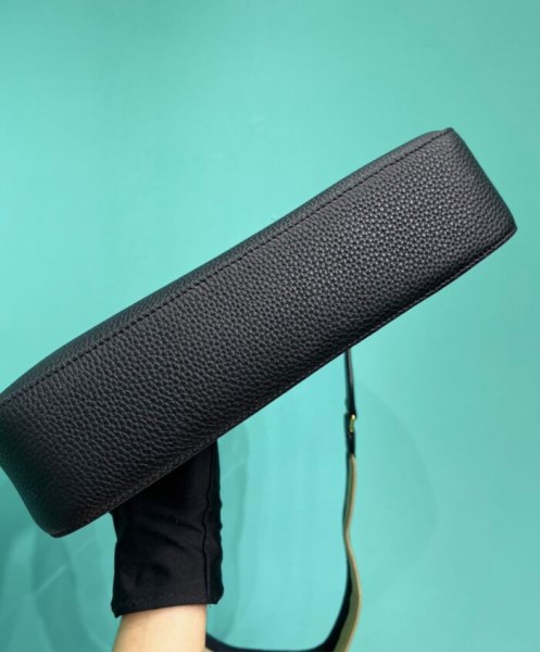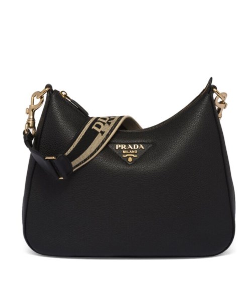 This soft leather bag decorated with the shiny metal lettering logo on the front is an expression of modern elegance. The adjustable logo-print woven tape shoulder strap adds a sporty note.