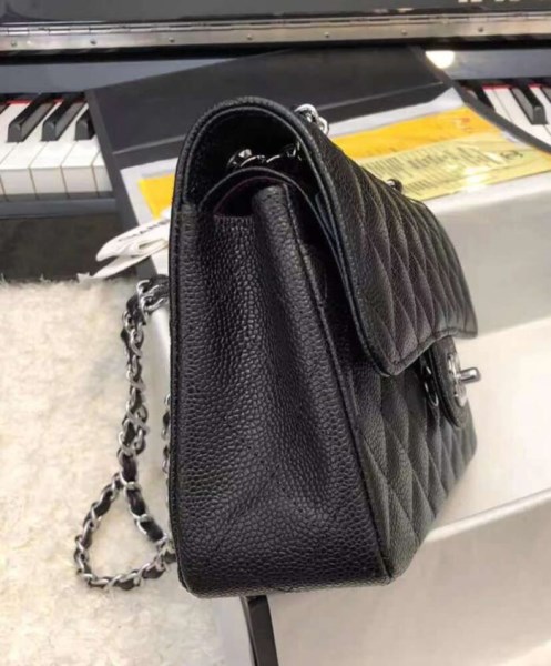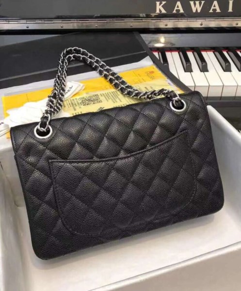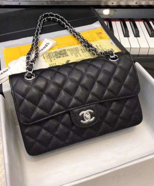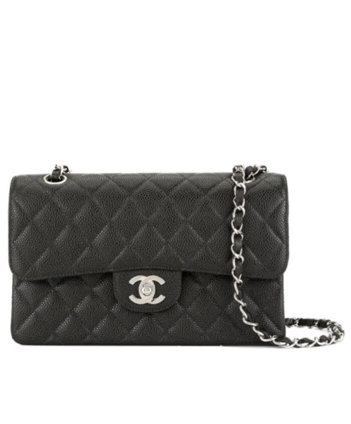 The black CC logo double flap and chain shoulder bag comes from the Chanel Collection. Design details: quilting effect, logo decorated with CC interlocking logo, flap with turnbuckle, leather-trimmed chain shoulder, rear pocket, clasp, and free pocket.