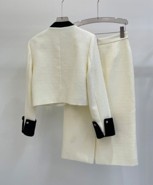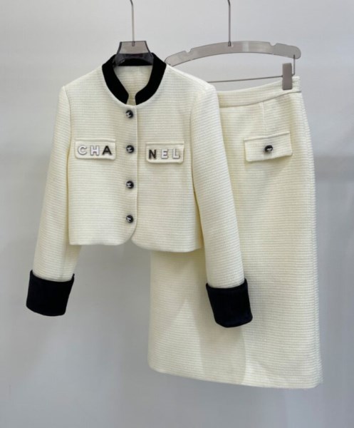 Chanel Women's Tweed Jacket And Skirt Set Cream
