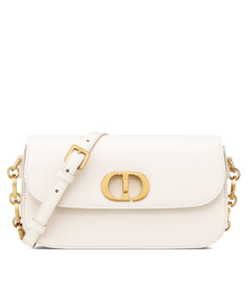 The 30 Montaigne Avenue bag enhances the hallmark line with a timeless and elegant style. Crafted in box calfskin, the rounded flap with delicate curves is punctuated by an antique gold-finish metal CD clasp inspired by the seal of a Christian Dior perfume bottle. The design is completed by other details, like the 30 Montaigne signature embossed on the back and the signature chain alternating gold-finish metal and tonal enamel links that match the leather. The gusseted bag features a spacious and refined silhouette that can be carried by hand, worn over the shoulder or crossbody.