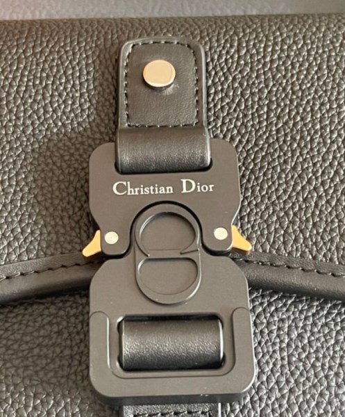 Aluminum buckle with CHRISTIAN DIOR signature and CD letters on flap closure