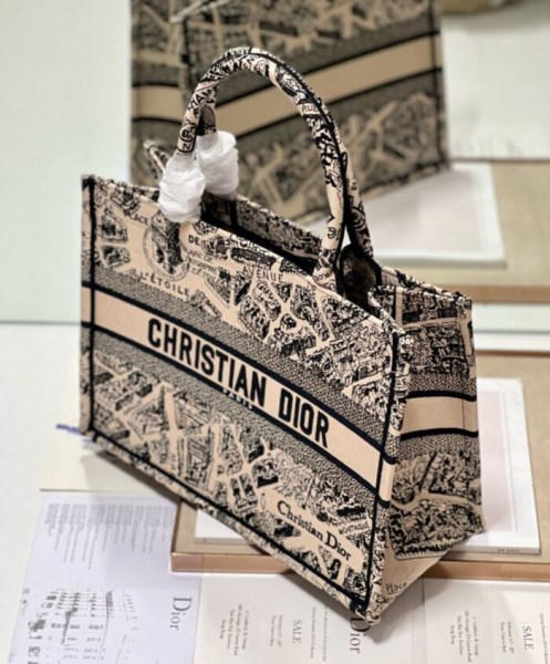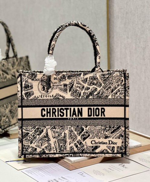 Introduced by Maria Grazia Chiuri, Creative Director of Christian Dior, the Dior Book Tote has become a staple of the Dior aesthetic. Designed to hold all the daily essentials, the style is fully embroidered with the season’s signature Plan de Paris motif, inspired by House archives and centered around Dior’s historic address on Avenue Montaigne. Adorned with the Christian Dior Paris signature on the front, the medium tote exemplifies the House’s signature savoir-faire and may be carried by hand or worn over the shoulder.