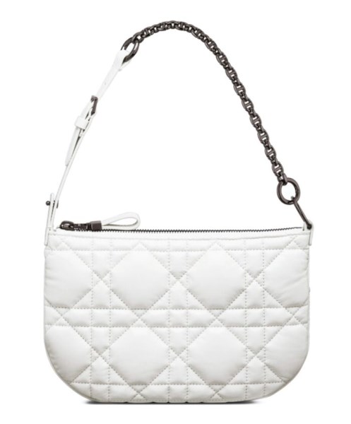 The season’s new Dior Caro tulip bag is a modern and hybrid creation from Maria Grazia Chiuri. Crafted in calfskin, it is distinguished by its unique Macrocannage quilted effect. The 2-in-1 design features an adjustable leather and ruthenium-finish metal chain handle, allowing the miniature bag to be worn over the shoulder for day looks or transformed into a clutch to enhance formal attire.