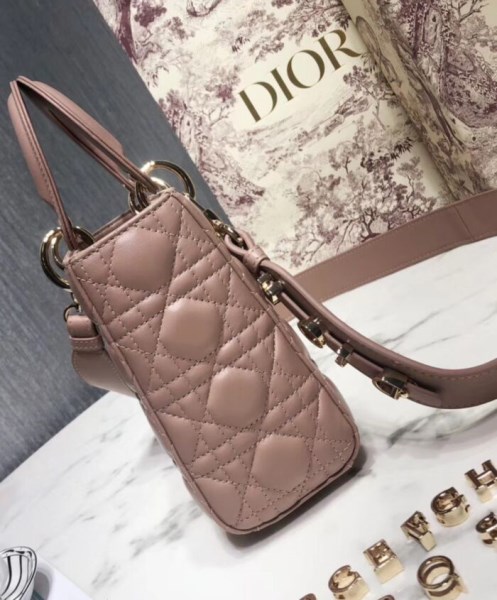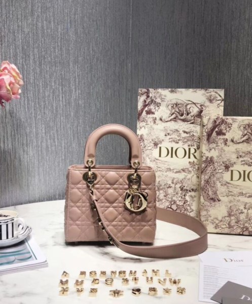 My ABCDior bag in blushed powder ‘Cannage’ lambskin, wide customizable shoulder strap with 3 badges included. Option to add up to a total of 6 badges.