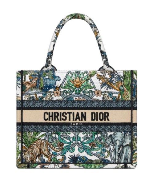 Designed by Maria Grazia Chiuri, creative director of Dior womenswear, the Book Tote is a staple of the Dior aesthetic. Crafted from fabric and embroidered all over with a multicolored etoile de Voyage motif by Pietro Ruffo, it combines Indian-inspired flora and fauna with stars to hold everyday essentials. Small size, with the Christian Dior Paris signature on the front, a reminder of Dior’s savoir-faire, and can be carried by the hand.