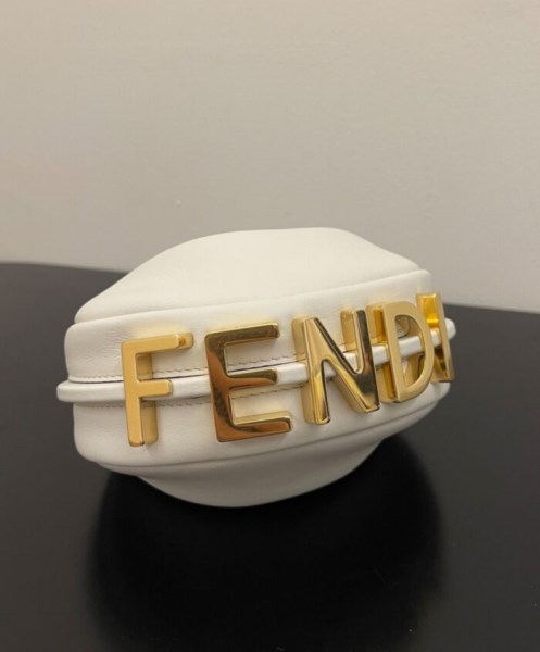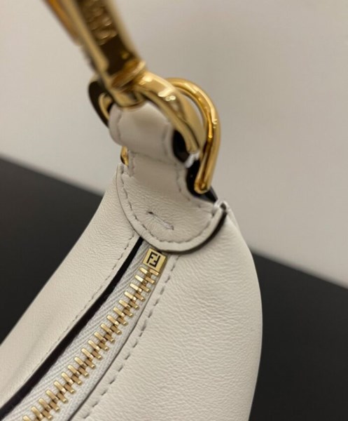 Nano Fendigraphy Hobo bag with zip fastening, embellished with vintage gold metal FENDI lettering. The adjustable strap with a clip allows it to be attached to larger bags or worn on the wrist. Comes with hooks for the shoulder strap. Made of leather. Gold-finish metalware.