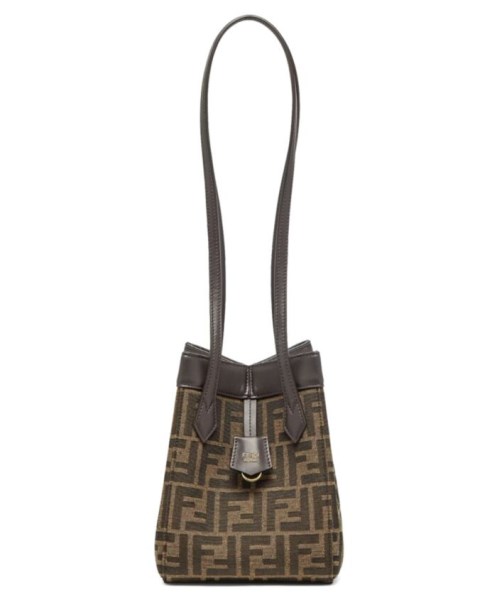 Mini Origami bag made of fabric with jacquard FF motif. The style recalls the creativity and dual nature of Fendi with an innovative design that can be transformed. Thanks to eight concealed magnets the bag can be styled as a shopper bag or bucket bag by folding it origami style.