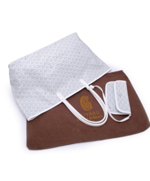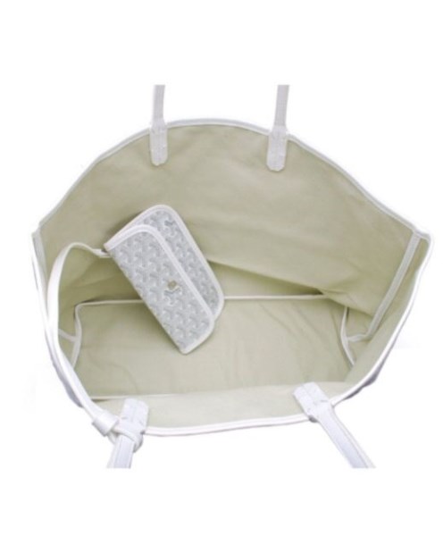 Interior Textile lining in main bag exterior and Goyard and product code heat embossed leather lining in coin purse