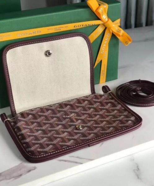 Designed with a wallet like function,the Plumet clutch holds coins,bills and cards,and can be worn cross body like a small bag with an additional shoulder strap.Its 3 separate pocket system perfectly adapts to its contents for elegance.Goyardine canvas &amp Chevroches calf leatherPalladium Linen and cotton lined with snap studs