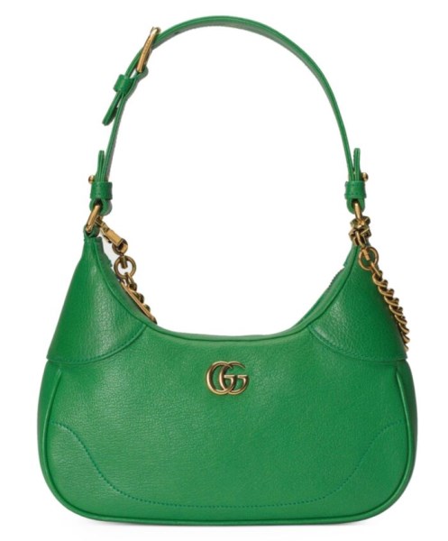 The Cruise 2023 Gucci Cosmogonie collection was presented against the backdrop of the historic Castel del Monte in Italy. The show brought together aesthetics from distant eras and geographies, and linked elements from the past with the present. This new small crescent-shaped shoulder bag was inspired by the House’s archives, it is crafted in soft leather and features the Double G emblem a code originally introduced in the 1970s. Embodying the notion of the versatility, the bag is enriched with two shoulder straps, one is crafted in leather and the other is in Gucci’s recognizable gold-toned chain design.
