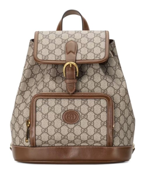 Materials, colors and House codes come together to infuse styles with a vintage feel. Here, this backpack is crafted from GG Supreme canvas with a leather trim. The style is completed by one of Gucci’s most historic codes the Interlocking G.
