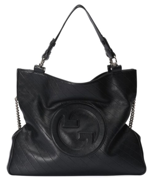 The Round Interlocking G that characterises the Gucci Blondie line originates from the House archives. Signature pieces such as this Gucci Blondie tote bag with a top handle and chain shoulder strap reinterprets the emblem as a subtler leather patch detail.