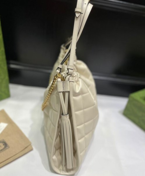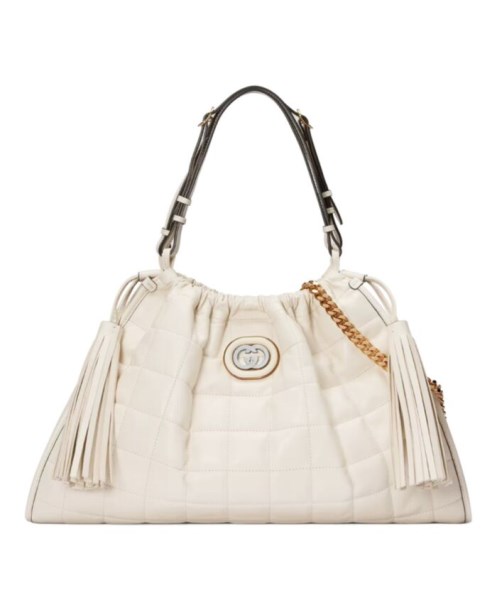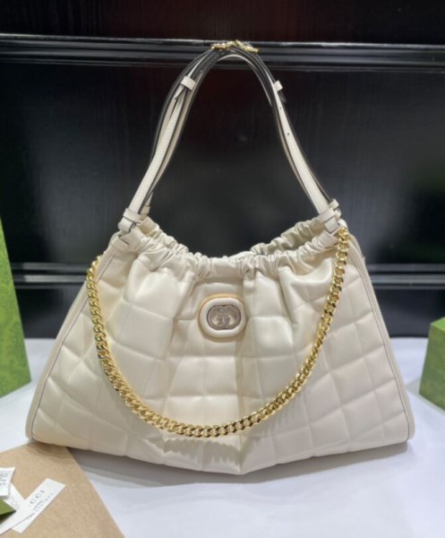Heritage and innovation combine in this elevated version of the everyday tote. Designed with a relaxed silhouette, the new Gucci tote bag combines quilted materials with a chain strap and a roomy structure, providing style, versatility and practicality.