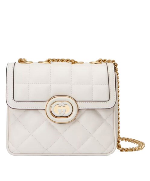 This striking shoulder bag explores classic silhouettes and refined materials. A quilted design plays with geometric shapes, highlighting emblematic symbols from the archive for a truly retro feel. The Interlocking G hardware makes a strong style statement, contrasting with the tonal 1970s inspired leather trim.