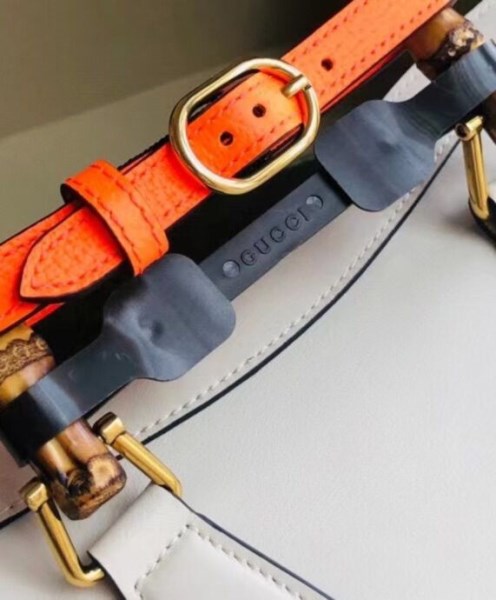 Combining recognizable elements of the House, the small tote bag is defined by its bamboo handles and Double G hardware. Crafted from, the accessory is further accentuated by two neon bands, a playful reference to the bands used to keep handles in shape.