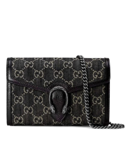The Gucci Aria collection explores the House’s archives, bringing historic symbols to the fore. A member of the Beloved lines, the Dionysus continues to be defined by its emblematic textured tiger head closure. The palladium-toned hardware is combined with GG denim atop this mini chain bag.