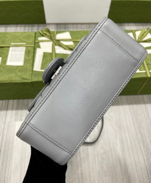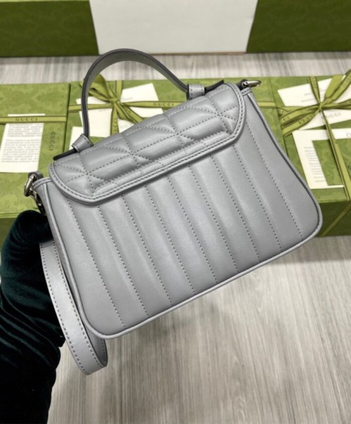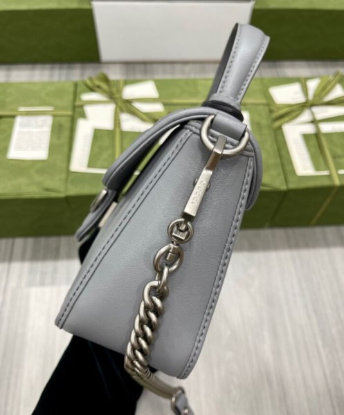 The Gucci Aria-Fashion Aria series continuously explores the elements of the brand’s collection, telling the Gucci design story through the fusion of classic and modern methods. The GG Marmont series is the representative work of the brand creative director’s initial creation. In each season, more connotations and new ideas will be incorporated through fresh perspectives. This mini handbag is made of novel dark gray quilted leather with vintage-style antique silver accents.
