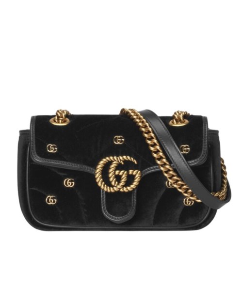 This GG Marmont mini shoulder bag presents a softly quilted velvet version of the classic bag style, complete with small Double G studs. A tonal leather trim compliments the luxurious shade of that heralds the beginning of a new season.
