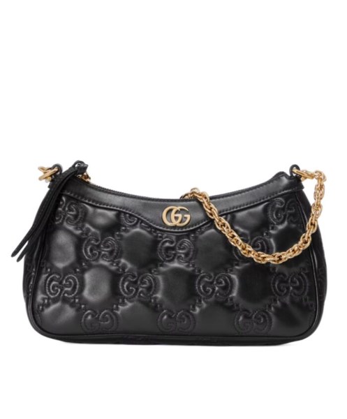 Matelasse leather is a signature material of the House, thanks to its super soft finish. The textured GG motif defines a selection of handbags, including this leather bag. The Double G hardware decorates the front, continuing the logo feel of the design.