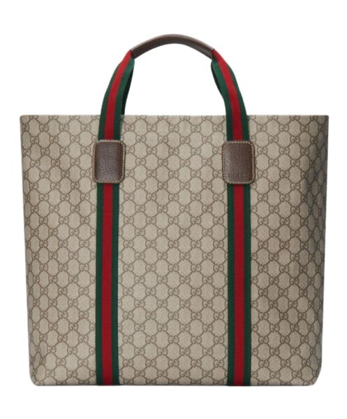 The GG Supreme Tender canvas, with its soft material and durable characteristics, adding a modern feel to established House designs. The emblematic green and red Web further enhances this tote bag.