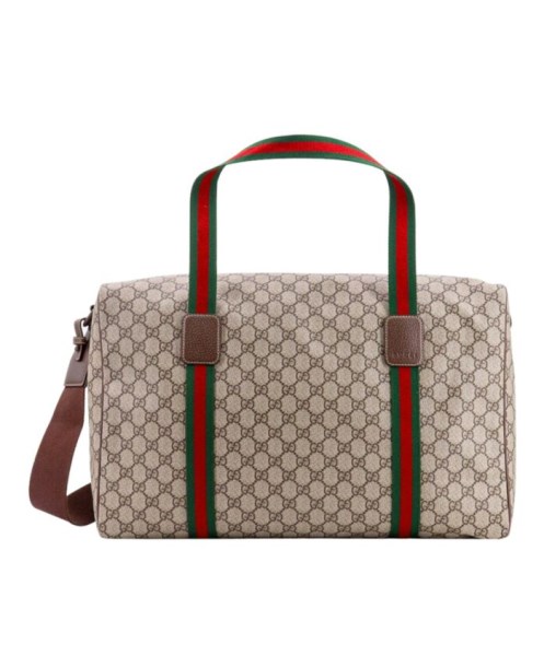 The GG Supreme is inspired by an archival design from the 1930s and remains one of the House’s most emblematic materials. Here, the classic palette defines this duffle bag. A green d and red Web completes the travel piece.