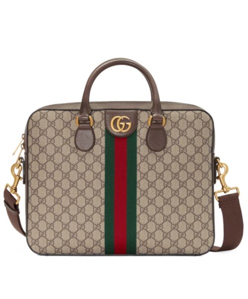 Introduced within the Ophidia line, the briefcase is crafted from GG Supreme canvas combined with the distinctive combination of the House Web with Double G hardware. The double-handled shape is also equipped with a removable strap so it can be worn on the shoulder. A secure zipper closure and large interior open pocket complete the silhouette.
