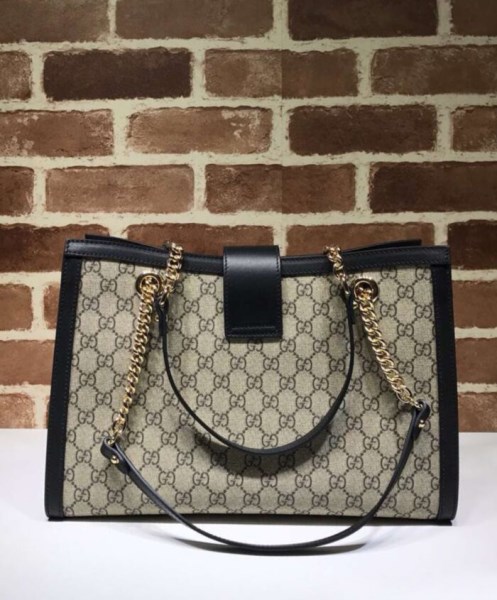 A medium shoulder bag with a key lock closure and chain straps. Made in GG Supreme canvas crafted from a coated microfiber fabric with the GG motif with detailing in an incredibly soft leather with a natural shine and supple appearance.