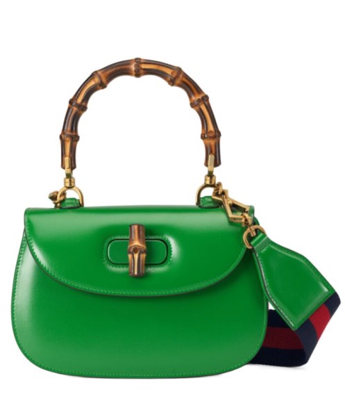 Heritage elements are reimagined with a contemporary twist throughout The Gucci Aria collection. An emblem of Gucci’s origins, bamboo has appeared throughout the House’s collections since the ’40s. After over eight decades, the material is paired with leather and two interchangeable shoulder straps atop this small bag a smooth leather version enhances the style’s classic feel while the Web stripe adds logo appeal.