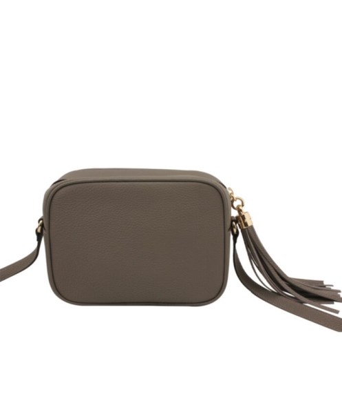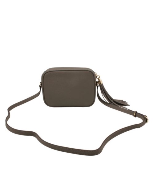 A compact shoulder bag with a leather tassel zipper pull. Sized to fit the necessities. Made in our light, natural grain leather.