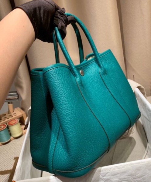 Bag in Negonda calfskin with chevron canvas lining, interior pocket and palladium plated Clou de Selle snap closure.
