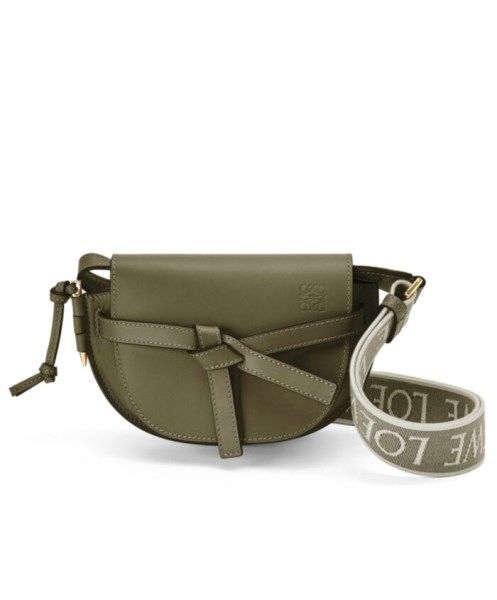 The Mini Gate Dual displays LOEWE’s unrivalled leather craftsmanship with a saddle-stitched knotted leather strap and a side-latched metal pin that gives the bag its name. This mini version is crafted in soft calfskin and features a removable shoulder strap in calfskin and jacquard with a repeat LOEWE pattern.