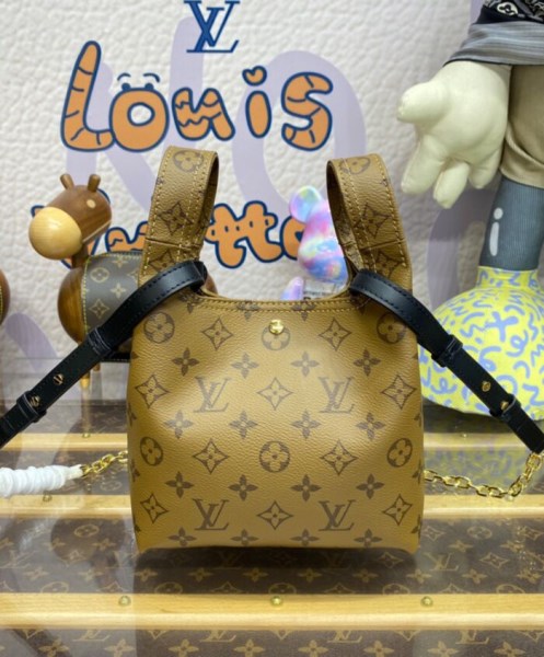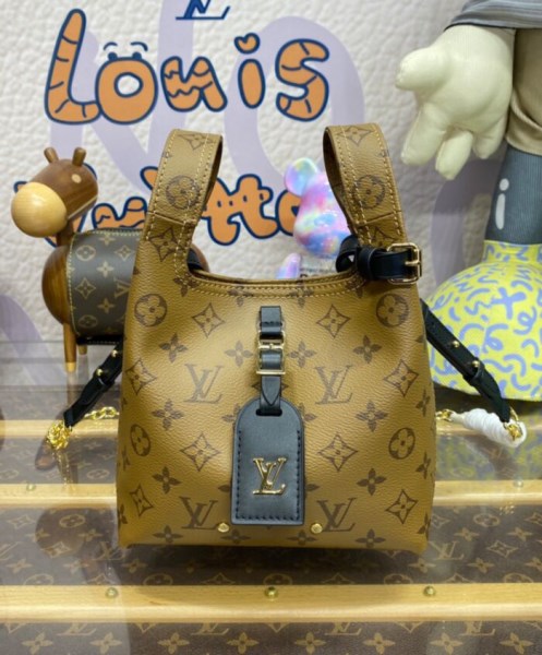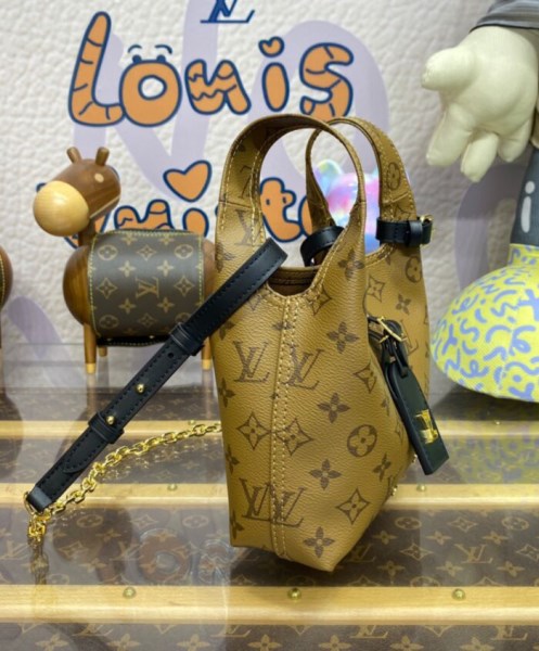 The Atlantis BB handbag is made from Monogram Reverse canvas with dark cowhide-leather trim, including on the LV name tag and detachable shoulder strap. The fashion-forward shape, inspired by the shopping bag, and supple construction make it body-friendly. An adjustable, removable strap enables cross-body carry.