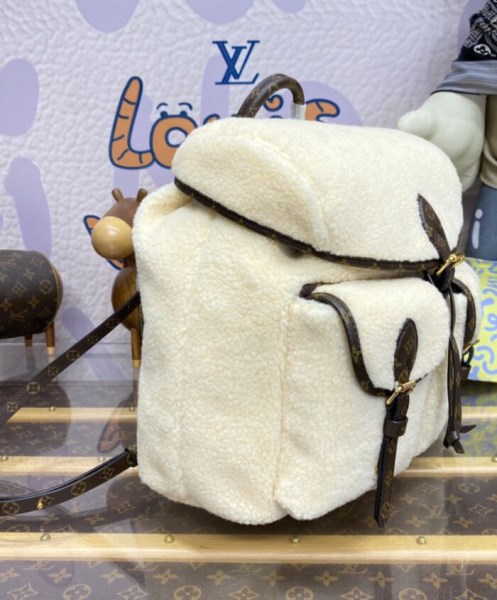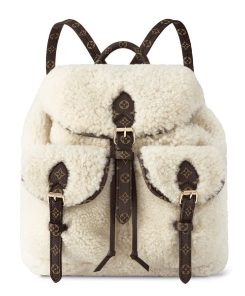 Louis Vuitton unveils an exclusive new model made from soft shearling: the Backpack. A statement piece for ski season, this functional and comfy backpack is perfect for any outdoor excursion, whether to the top of the mountain or drinks at the ski lodge. There’s a handle for hand carry and two small outside pockets for essentials.