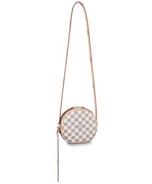 For Summer 2020, Louis Vuitton introduces a miniature version of the soft-sided Boite Chapeau Souple PM handbag in Damier Azur canvas. Combining classic House details such as the gold-tone padlock and natural cowhide-leather trim with a side buckle and adjustable strap, this hatbox-shaped bag becomes irresistible.