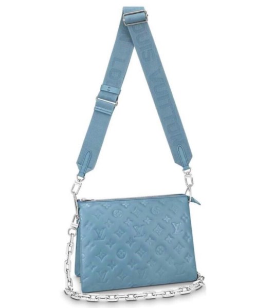 The most eye-catching bag of the Fall-Winter 2021 collection, the Coussin MM handbag is fashioned from puffy lambskin, embossed with a Monogram pattern. Voluminous, soft, and supple, the bag almost feels like a pillow. An adjustable textile strap allows shoulder and a cross-body carry, while the new Edge Chain, enables under-arm and baguette carry.