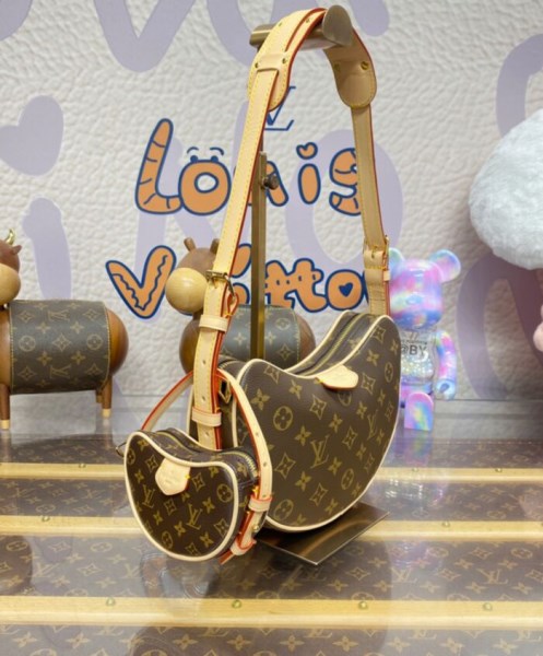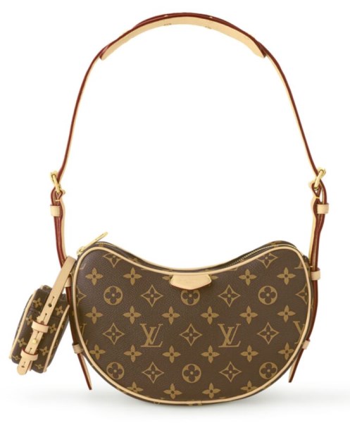 The Croissant MM handbag is made from Monogram coated canvas with natural cowhide-leather trim and comes with an adorable miniature version of the same bag. Thanks to its removable and adjustable strap, this versatile bag can be worn cross-body, short- or long-shoulder, and with or without the matching mini bag.