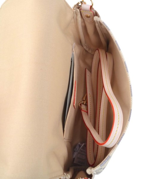 | Exterior | LV Monogram Canvas exterior with flip over flap featuring a Louis Vuitton Paris engraved polished brass tab magnetic snap button closure,a polished brass link chain arm carry strap and an ultra slim detachable leather shoulder strap |