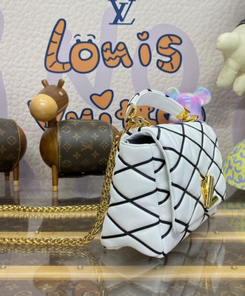 Fashioned from soft, luxurious lambskin, the GO-14 MM bag features the signature quilted pattern designed for the Maison’s historic trunks. Accented with a gleaming golden LV Twist lock, this versatile model can be carried by the top handle or worn on its sliding chain. Alternately, the top handle can also be converted into a leather pad on the chain for a comfortable shoulder or crossbody carry.