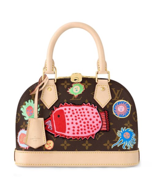 An update of a classic bag, the LVxYK Alma BB joins the Faces theme of the extraordinary new Louis Vuitton x Yayoi Kusama collection. The House’s signature Monogram canvas is printed and embroidered with an array of colorful images, featuring a stylized fish and whimsical faces, from the renowned Japanese artist’s series of paintings My Eternal Soul, initiated in 2009. An original, artistic twist on a handy and handsome accessory.