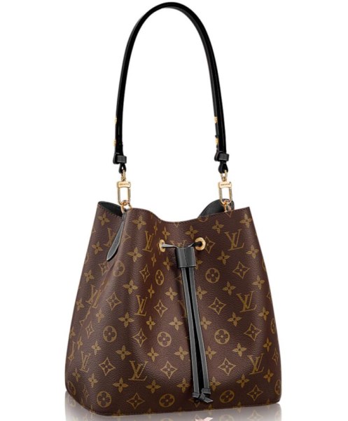 Designed in 1932 to transport bottles of Champagne, the Noe returns for Spring 17 as the Neonoe, an on-trend bucket bag in supple Monogram canvas with colorful calf-leather accents and an adjustable strap that lengthens for a modern, cross-body carry.