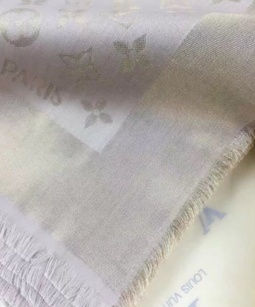 This sophisticated shawl,woven with a tone-on-tone Monogram pattern,is given a subtle shimmer by the use of a soft shine yarn.Louis Vuitton Paris signature in lurex