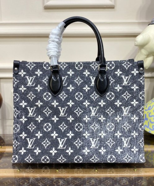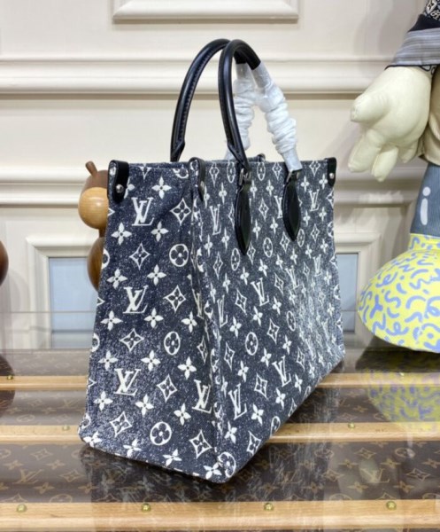 This season, the OnTheGo MM tote is offered in new Monogram Jacquard Denim, a pattern first seen on the Cruise 2023 runway. Woven specifically to obtain a raw, stone-washed effect, the jacquard lends the bag a modern allure. Lined with reverse Monogram, this roomy, versatile piece is finished with black-leather trim and silver-color hardware.