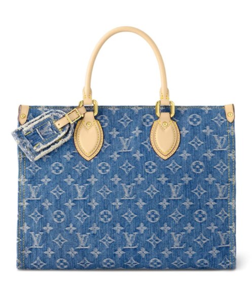 The OnTheGo MM tote bag is offered in new Monogram Denim canvas with natural cowhide-leather on the top handles and handle mounts. Thanks to the square shape, the OnTheGo has a large capacity and can hold a laptop. Its rolled-leather top handles and two longer shoulder straps enable carry options.