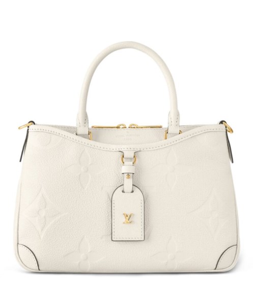 With its more compact format and multiple zipped compartments, this Trianon PM handbag in embossed Monogram Empreinte leather is the perfect alternative to the traditional tote. Its V-cut lines are inspired by the emblematic Louis Vuitton Pallas bag. Two top handles, as well as a detachable shoulder strap, make it comfortable to carry.