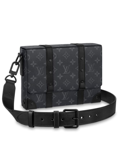 The Trunk Messenger is a small rectangular bag made from Monogram Eclipse canvas and finished with matte-black rivets and reinforced black-leather corners inspired by those on Louis Vuitton’s iconic trunks. It features an adjustable and removeable strap and numerous pockets, inside and out, to keep things organized and accessible.