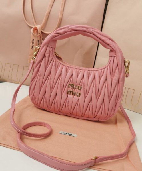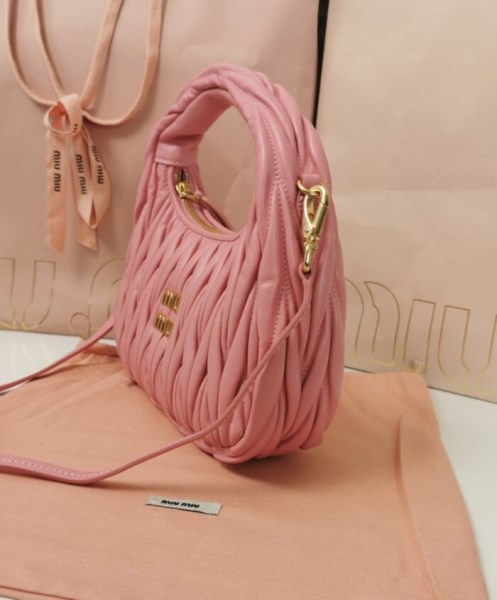 Miu Miu Wander Matelasse Nappa Leather Mini Hobo Bag Pink