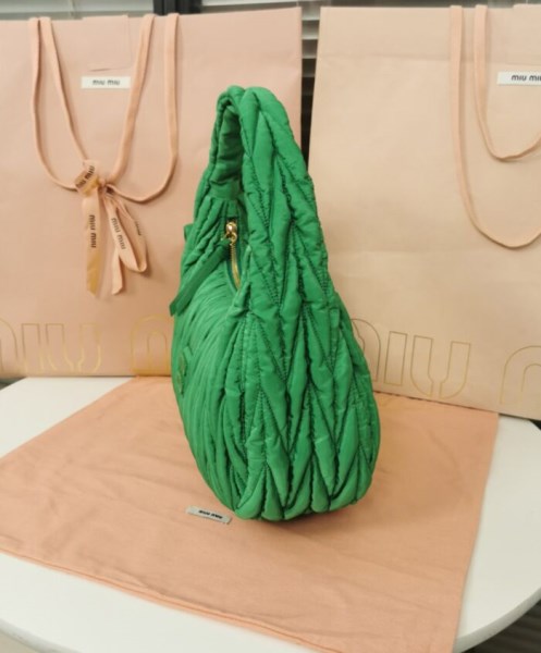Miu Miu Wander Matelasse Regenerated Nylon Hobo Bag Green