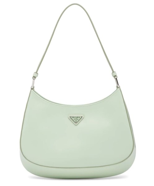 The Prada Cleo bag with sophisticated allure reinterprets an iconic design of the brand from the 1990’s. Sleek curved lines emphasized by the particular construction rounded on the bottom and sides give this hobo bag a soft, light look. Brushed leather, a modern and versatile material that is distinctive in Prada collections, is ideal for creating always new combinations and contrasts. The enamel triangle logo decorates the silhouette.