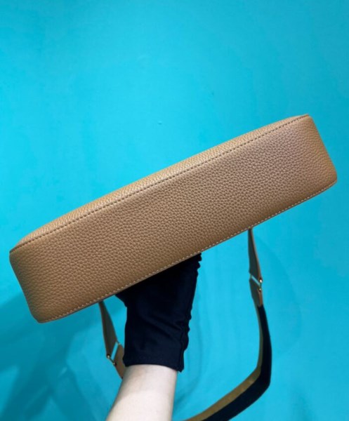 This soft leather bag decorated with the shiny metal lettering logo on the front is an expression of modern elegance. The adjustable logo-print woven tape shoulder strap adds a sporty note.